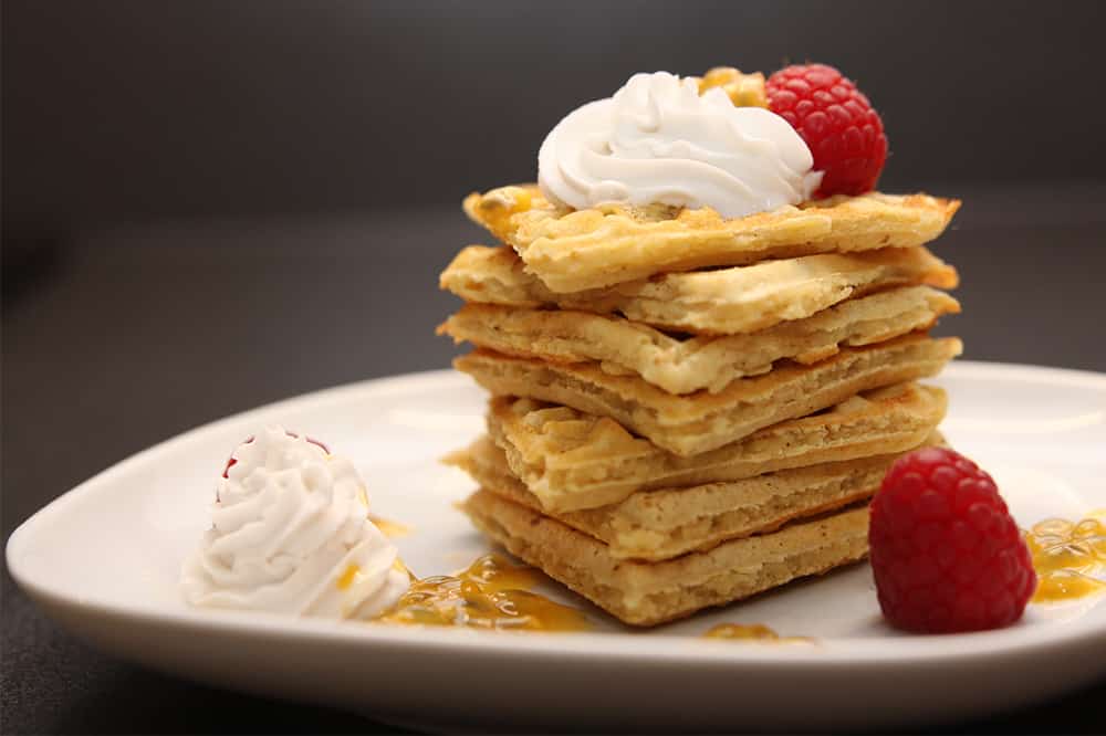 I dag gjorde jag veganska våfflor som varken innehåller gluten eller socker. Helt klart ett nyttigare alternativ för den som önskar det. De här små godbitarna är något matigare än traditionella våfflor och jag serverade dem med kokosgrädde, färska bär och passionsfrukt.
